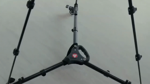 When finishing your work, you can press the pin lock button to fold the legs, binding the three legs together by the strap.