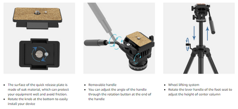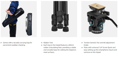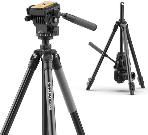 Kingjoy VT-1500 lightweight professional video tripod & VT-1510 fluid drag pan head-3 section, 65in, 4.8lbs